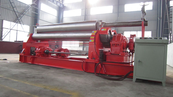 一、機(jī)械型三輥卷板機(jī),用于將鋼板卷成圓筒形。