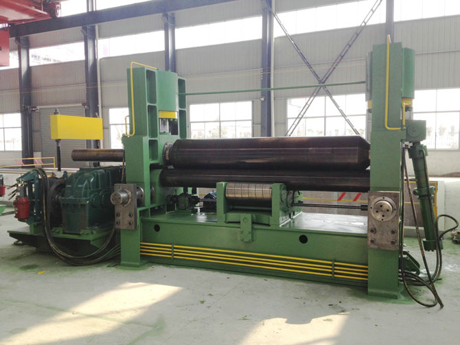 W11S上輥水平移動式三輥系列卷板機(jī) 上輥既可以垂直移動,又可以水平移動,同時(shí)具備預(yù)彎及卷圓雙重功能,上輥呈鼓形狀,下輥增設(shè)拖輥,通過調(diào)節(jié)拖輥,可以卷制從薄板到厚板這一個(gè)廣泛范圍內(nèi)的高精度產(chǎn)品。實(shí)現(xiàn)NC化控制,一人操控,簡單可靠,效率大幅提高。增設(shè)卷錐筒裝置,實(shí)現(xiàn)大錐度的工件卷制。上輥垂直及水平位移采用數(shù)字顯示,位移量設(shè)定,直觀醒目。