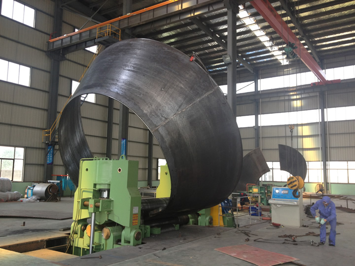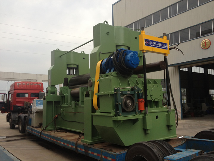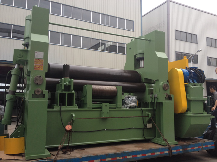 該機屬于引進日本先進技術(shù)液壓型三輥卷板機,用于將鋼板卷成圓筒形、圓錐形、圓弧形等。