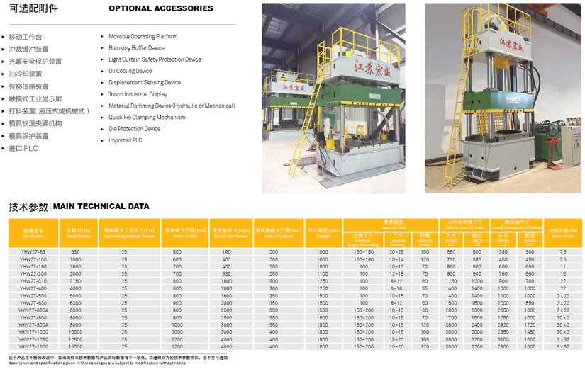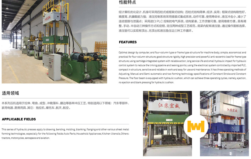 YHW27-1250T四柱單動式薄板拉伸液壓機